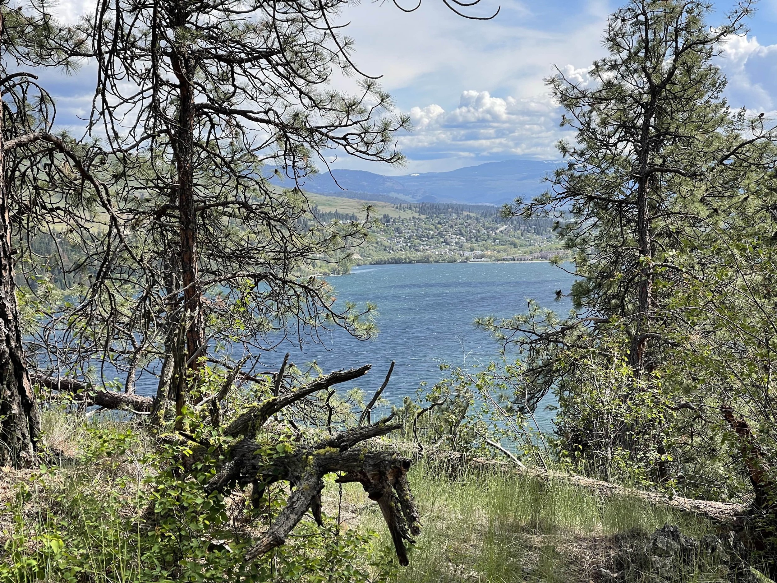 This lovely 2.9 km loop takes hikers on some slightly steep uphill sections through lush forests that open up into perfect panoramic views. One of the lookouts (Ghoulie’s Lookout) provides a convenient bench to take a break and enjoy the scenery. At the second lookout, hikers will take in views of Wood Lake in the foreground, the village of Oyama in between, and Kalamalka Lake in the background.