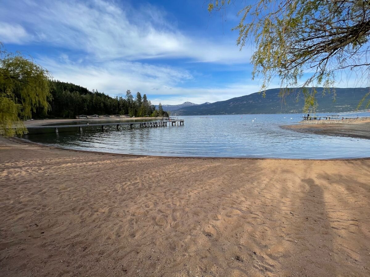 Red Sand Beach is a small beach situated in a cove of the peninsula of Okanagan Lake called Cameron Point located in Vernon, British Columbia. It features a quiet and picturesque place to relax or have a family picnic under the large weeping willows. Red Sand Beach has unique red sand granules that are easy on the feet and help to filter the water making it crystal clear and a great spot for swimming. Kayaking and paddleboarding are also a great choice at Red Sand Beach and the water is shallow, allowing you to walk out pretty far and in turn making it an excellent place for small children to swim.
