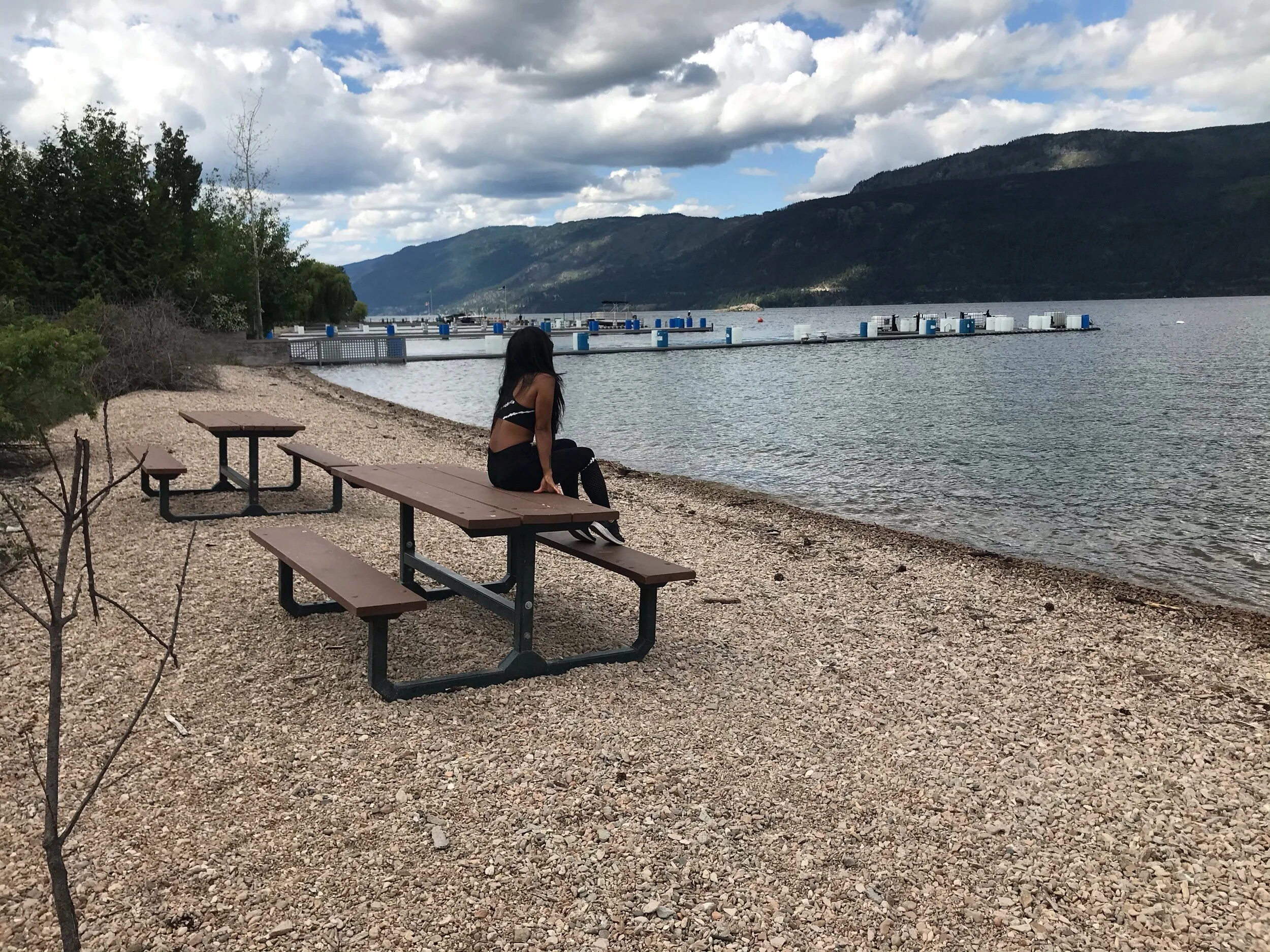 The beach itself consists of rocks and pebbles with a pink hew. It features two picnic tables an outhouse and ample parking. Whiskey Cove is the ideal spot to bring the portable bbq and have a family picnic or just a stop along your route as you cruise the many beaches that are situated along Carrs Landing and Okanagan Centre.