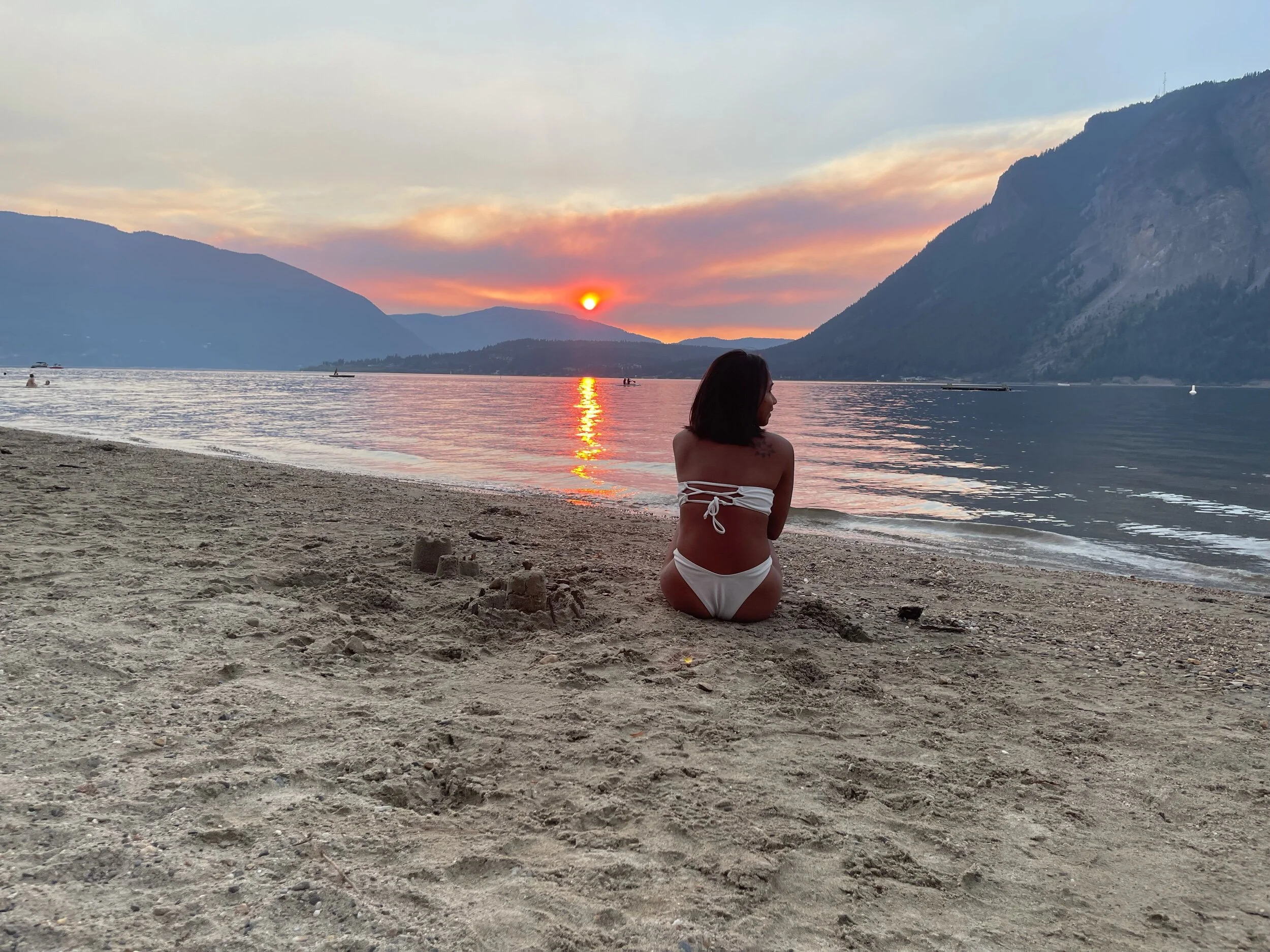 Canoe Beach lies on the shores of picturesque Shuswap Lake, British Columbia. Though generally considered part of the city of Salmon Arm, the beach is actually located in the small lakefront village of Canoe, BC. The beach is just a short drive west of Salmon Arm and is one of the most beautiful and sought-after white-sand beaches in the Shuswap region. Canoe Beach features ample picnic space, lots of amenities, and spectacular mountain views, making this beach the perfect day trip for swimming, paddleboarding, and kayaking.