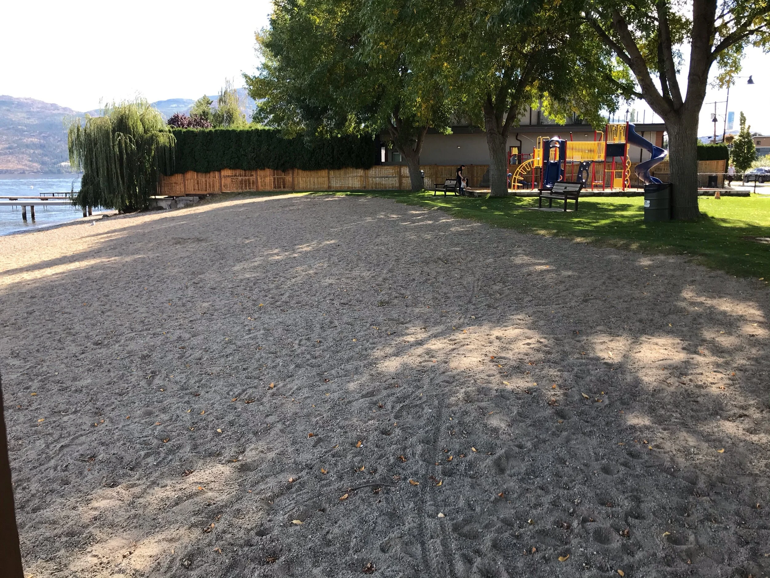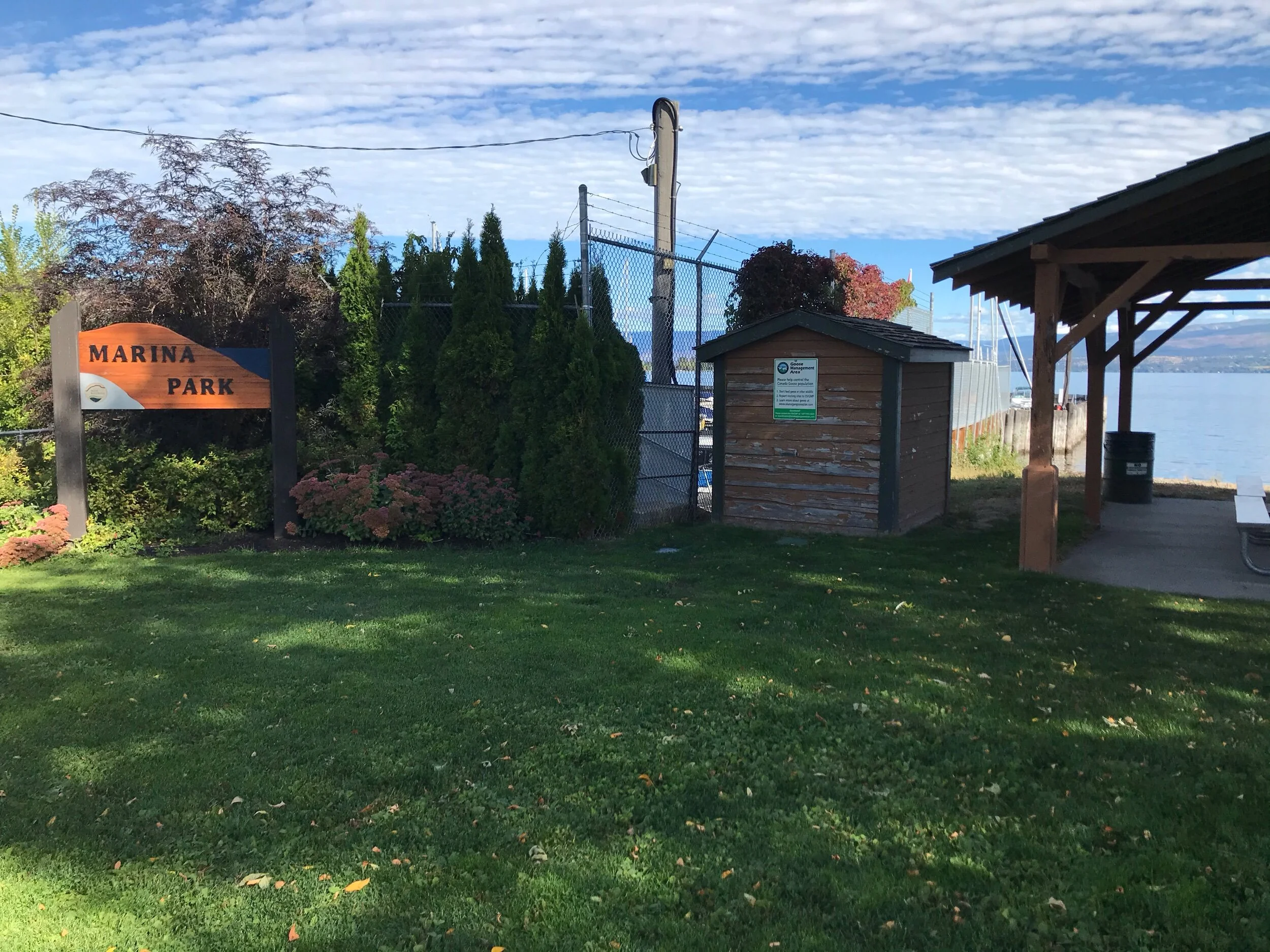 Marina Park is part of the Gellatly Bay area in the city of West Kelowna, British Columbia. The park is situated on the shores of the popular vacation destination known as Okanagan Lake. It features a nice sandy beach, covered picnic tables, a grassy play area, washrooms, and an excellent playground for the kids.