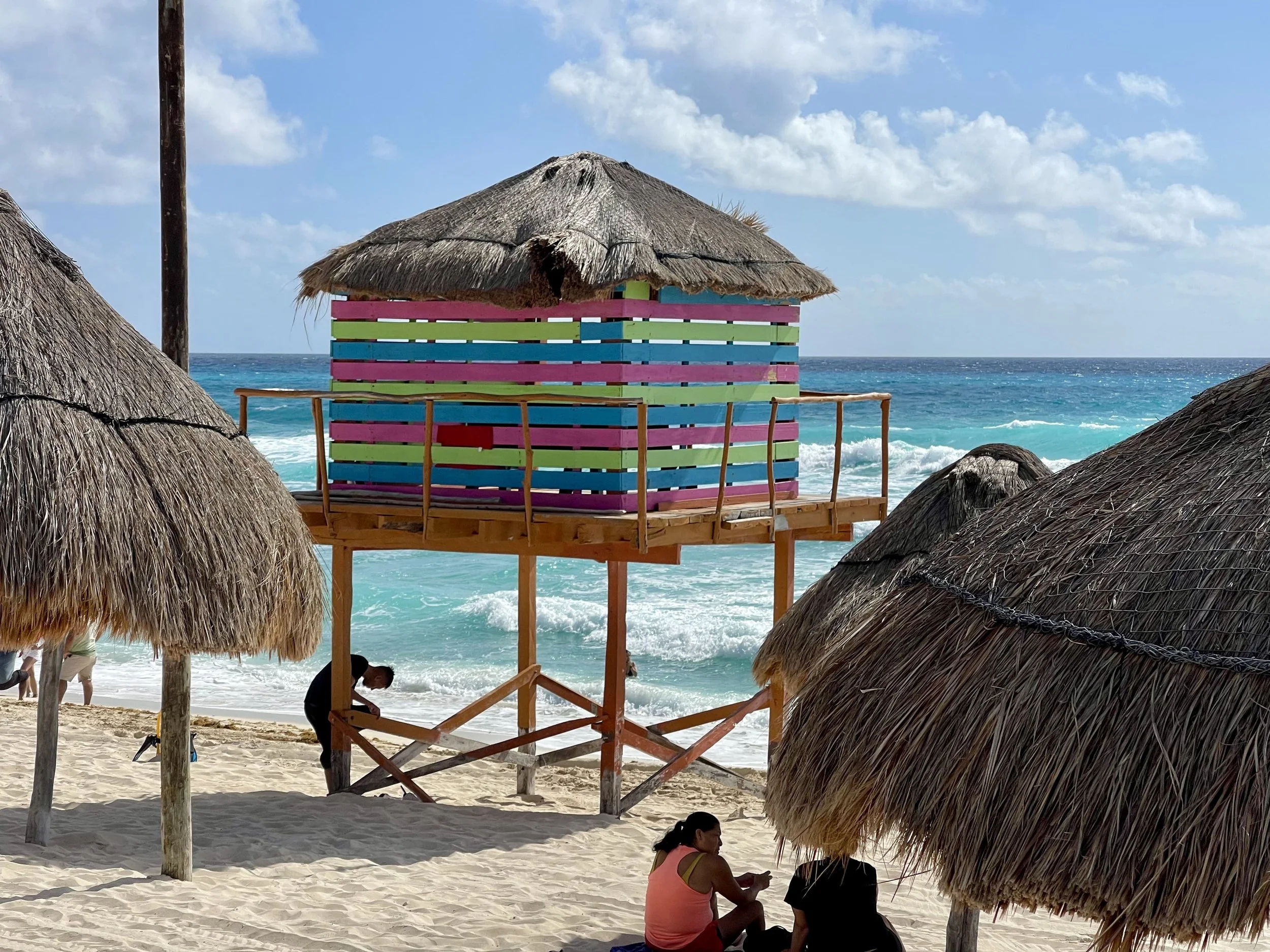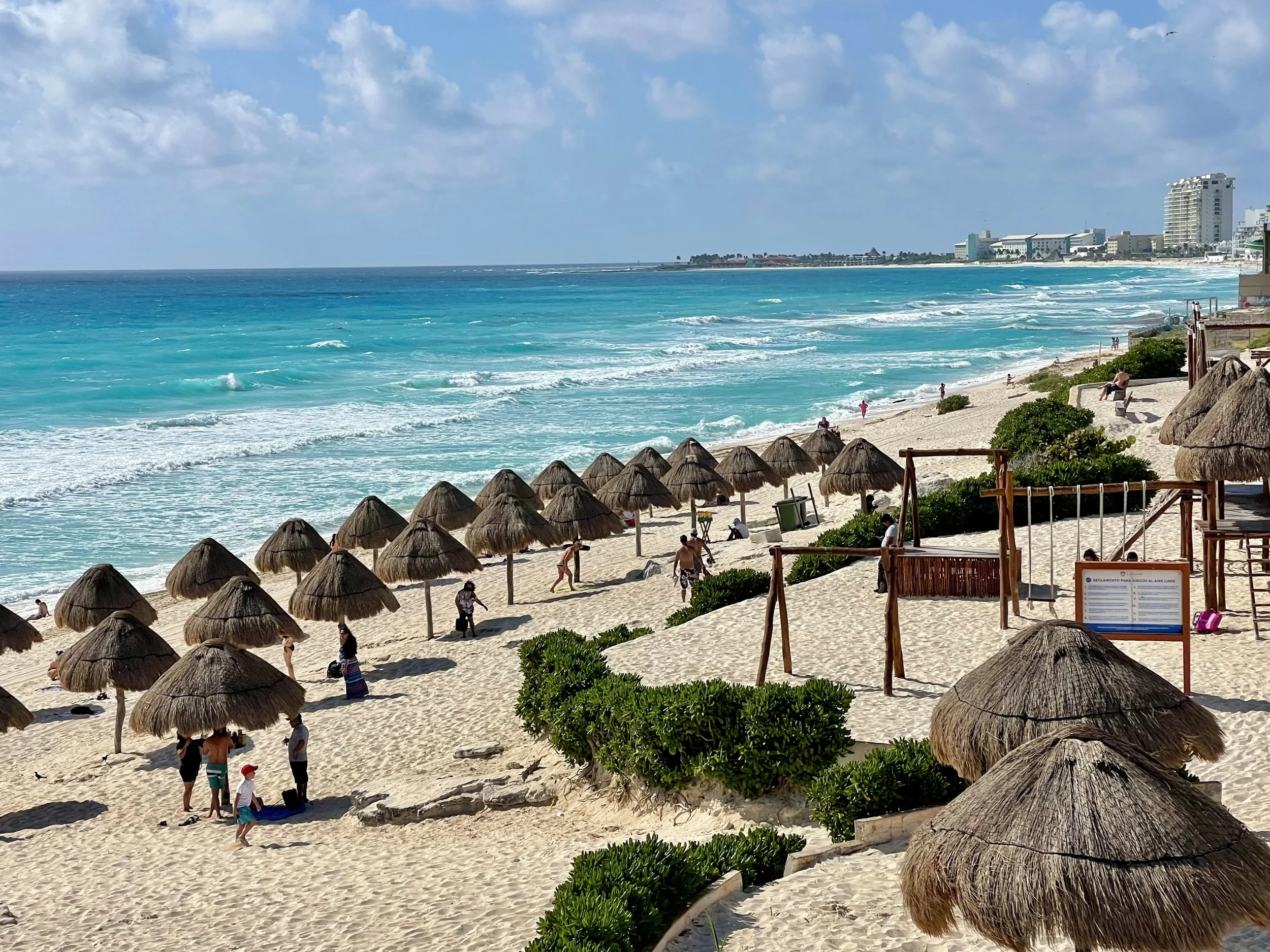 Playa Delfines translates to Dolphin Beach in English and also carries the nickname El Mirador (The Lookout). The reason it is nicknamed “The Lookout” is because of the excellent views over the Caribbean Sea and the coastline. There is also a colorful Cancun sign where visitors line up to take a picture.