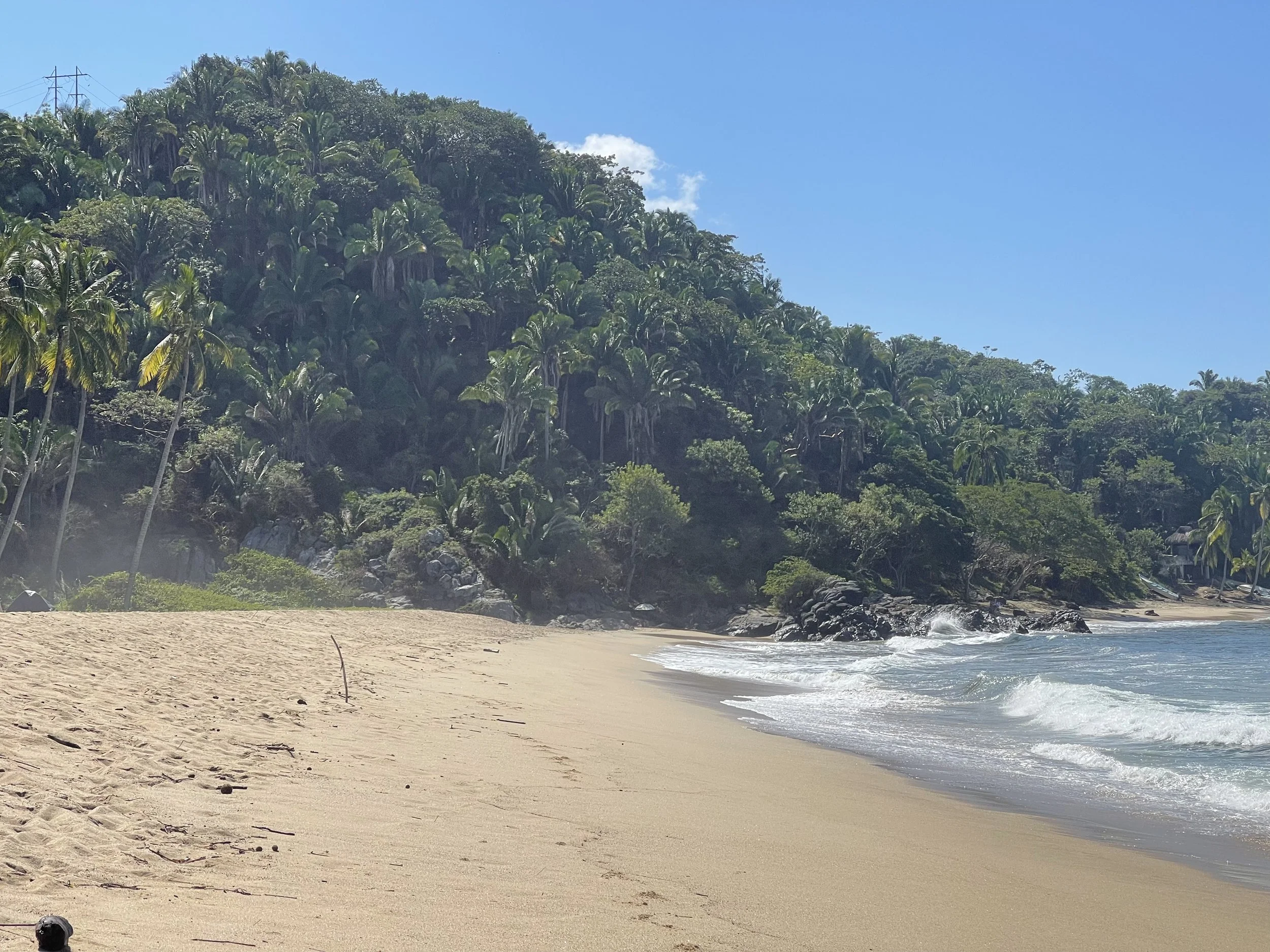 Playa San Panchito is a small beach in the town of San Pancho (San Francisco) that is located in the state of Nayarit, Mexico. The beach is separated at times from the larger Playa San Pancho by a seasonal creek and lagoon that flows out from the Sierra Madre mountain range. There are no amenities, restaurants, or salespeople at Playa San Panchito, but it is a quiet place to get away from the only slightly busier Playa San Pancho.