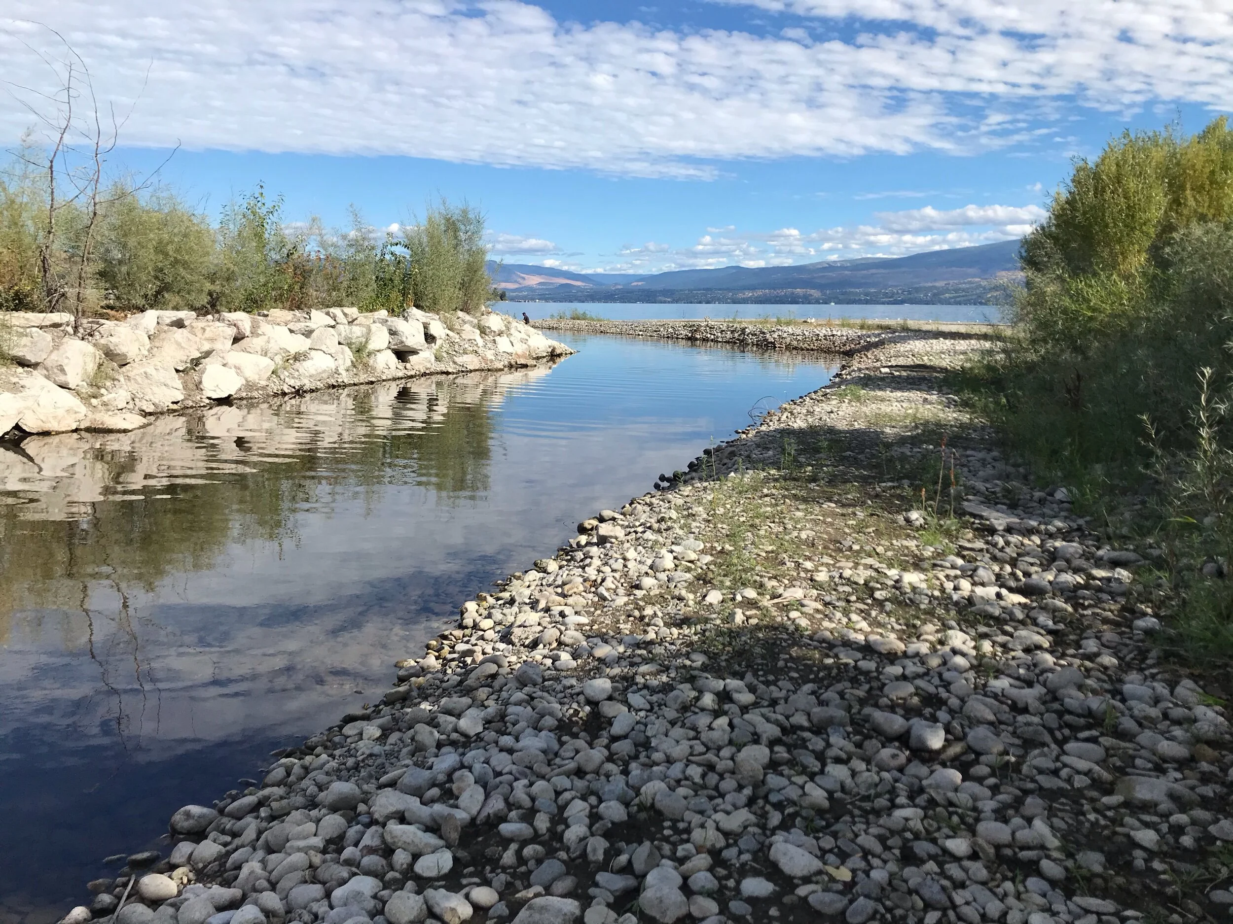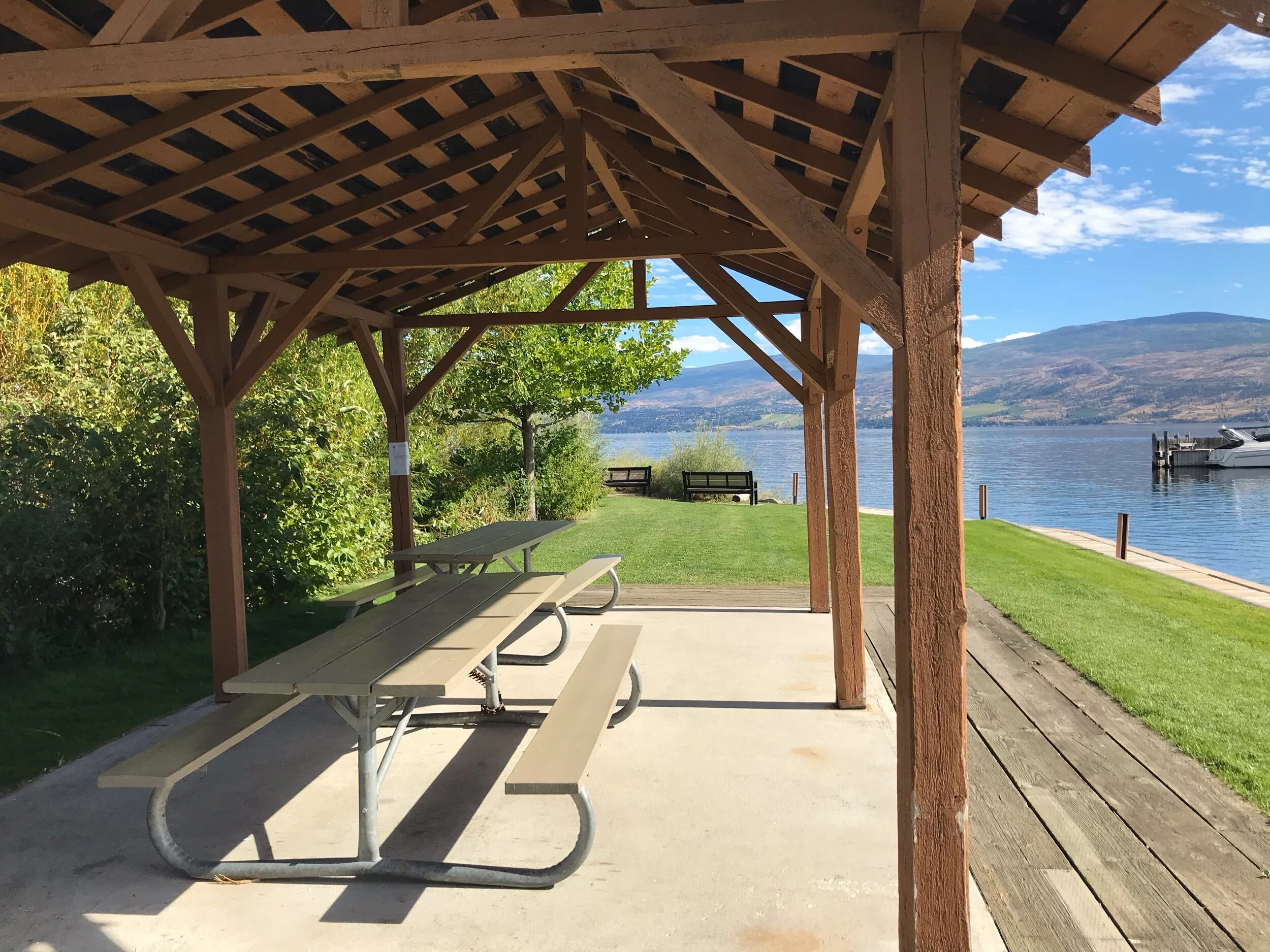Powers Point in West Kelowna, BC is a small park that serves as the outflow of Powers Creek. The park is essentially a spit of sand and rock with a secluded little beach area away from the busier beaches of the Gellatly area. The park also features a grassy area with a gazebo, picnic tables, and benches that have an excellent view looking out over Okanagan Lake.