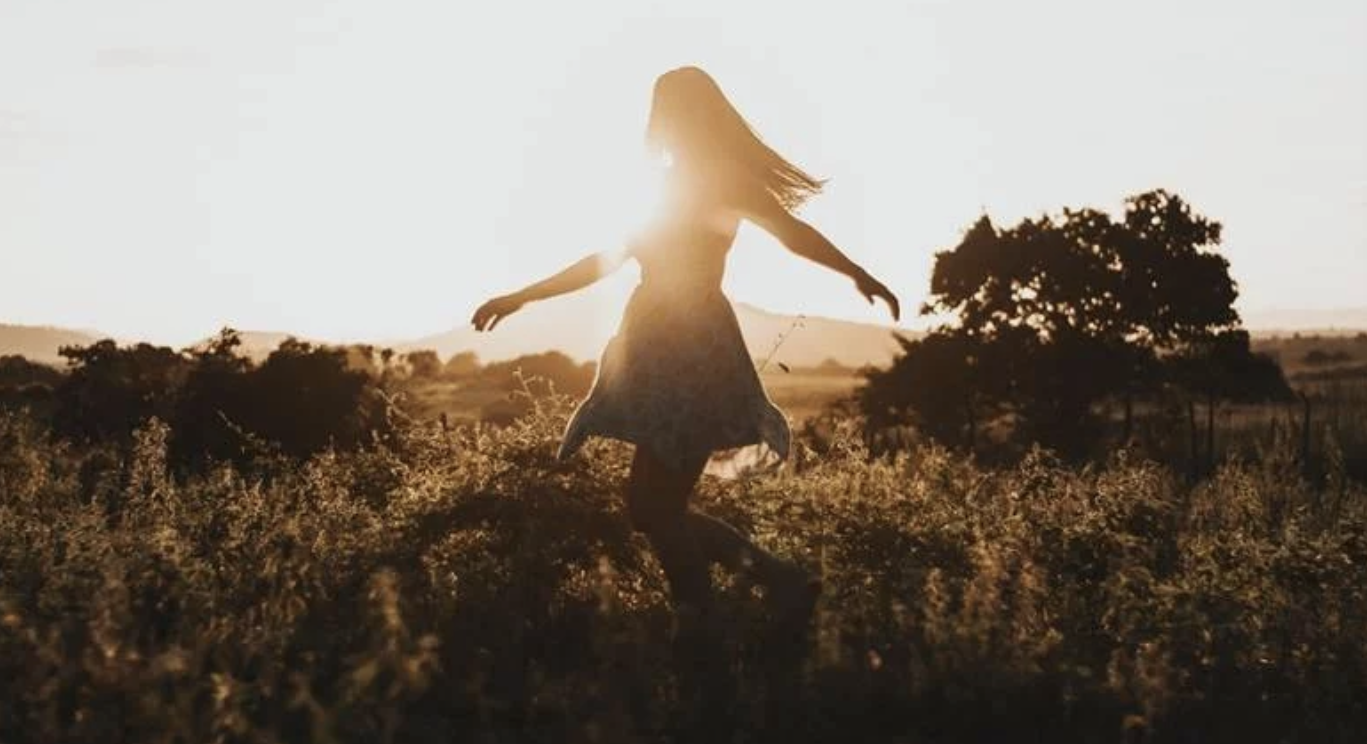A woman walking through a field