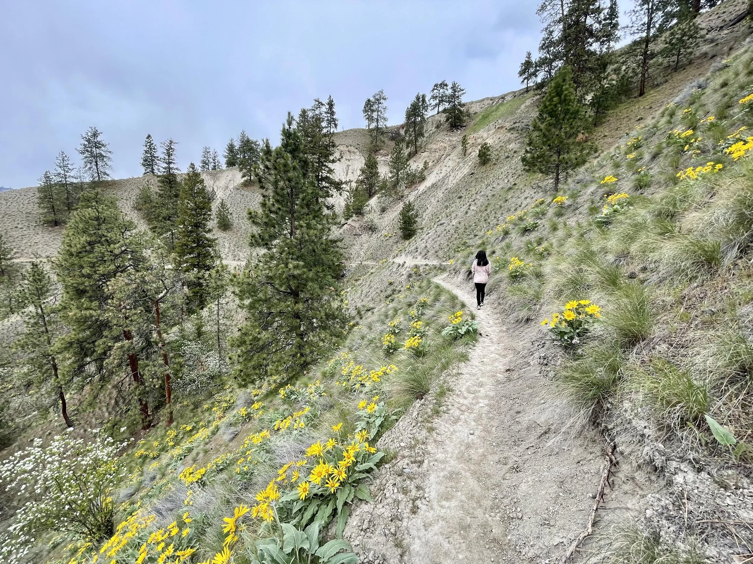 Full Loop Trail is a brand new hiking trail that is situated in the tiny village of Okanagan Centre in Lake Country, BC. The trail is located just off of Okanagan Centre Rd W and leads hikers uphill as it meanders through hilly grasslands and desert-like canyons. It boasts spectacular scenery as it occasionally opens up to panoramic views of Okanagan Lake and on a clear day one can even see the city of Kelowna. Completing the Full Loop Trail takes around an hour to complete and is well worth checking out.