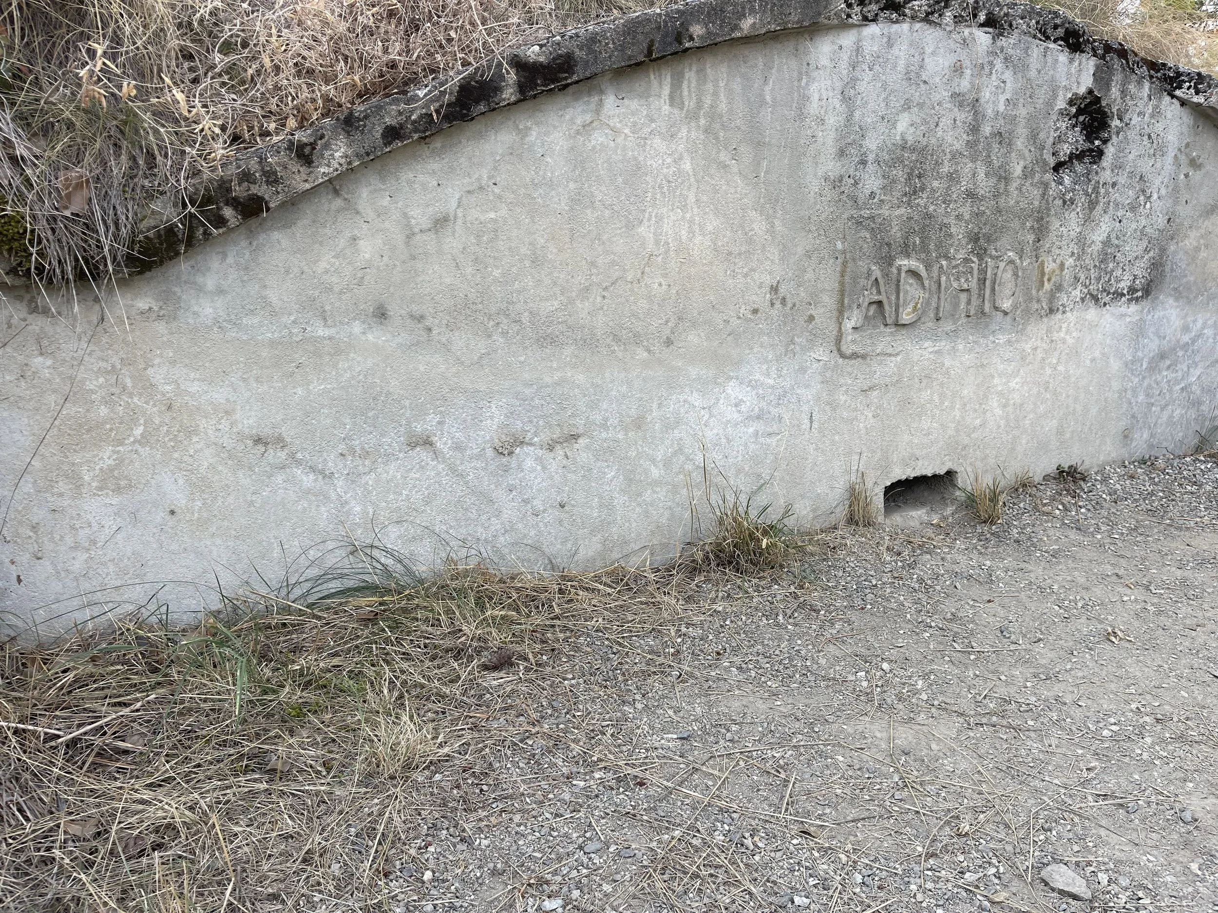 The tomb is situated 100 feet from the shoreline of Okanagan Lake and is constructed of thick concrete. Unfortunately, around 50 years ago, the tomb was broken into, and it was decided to cover the tomb up with dirt, only revealing the top, where you’ll see the inscription 1910.