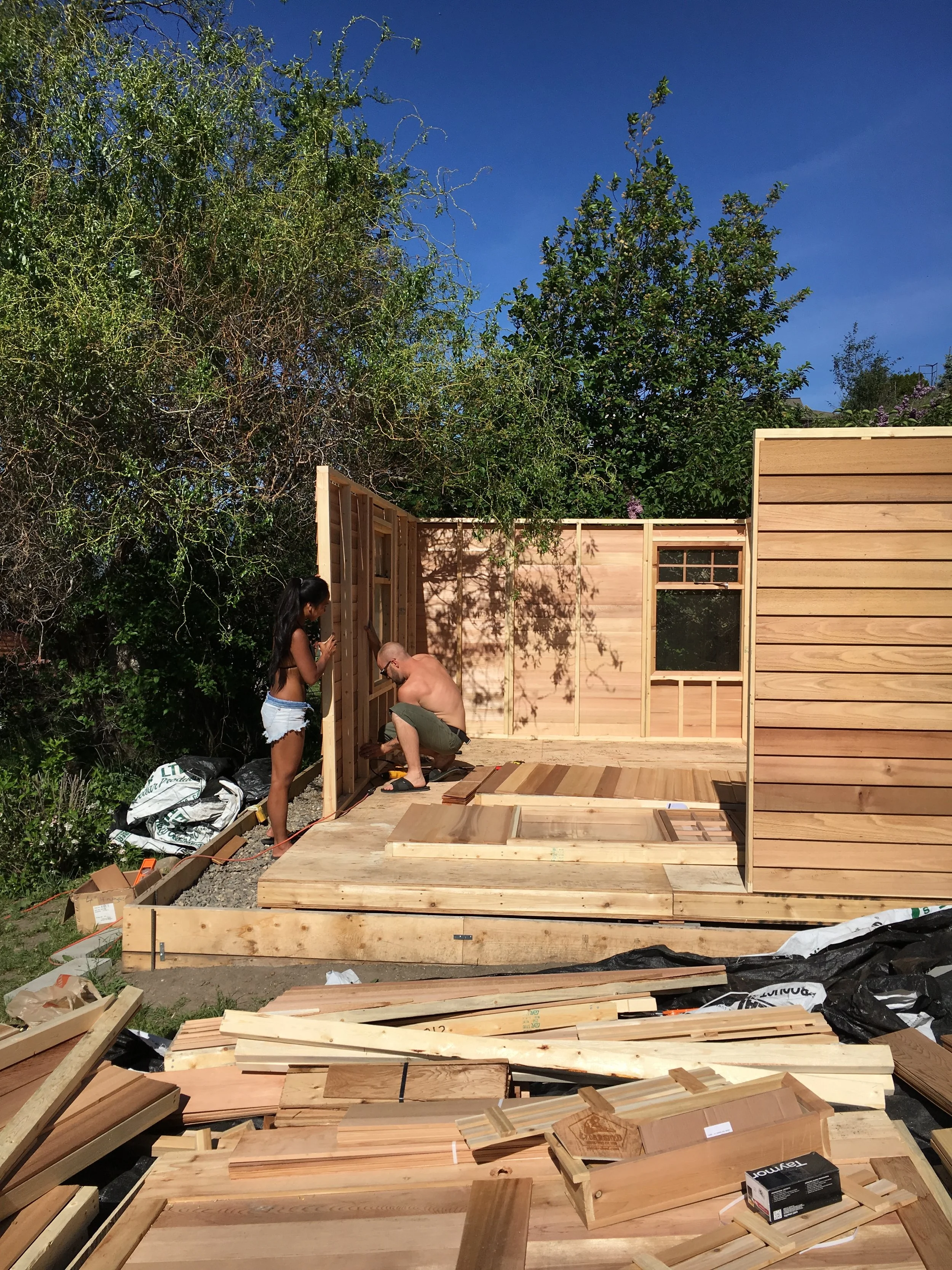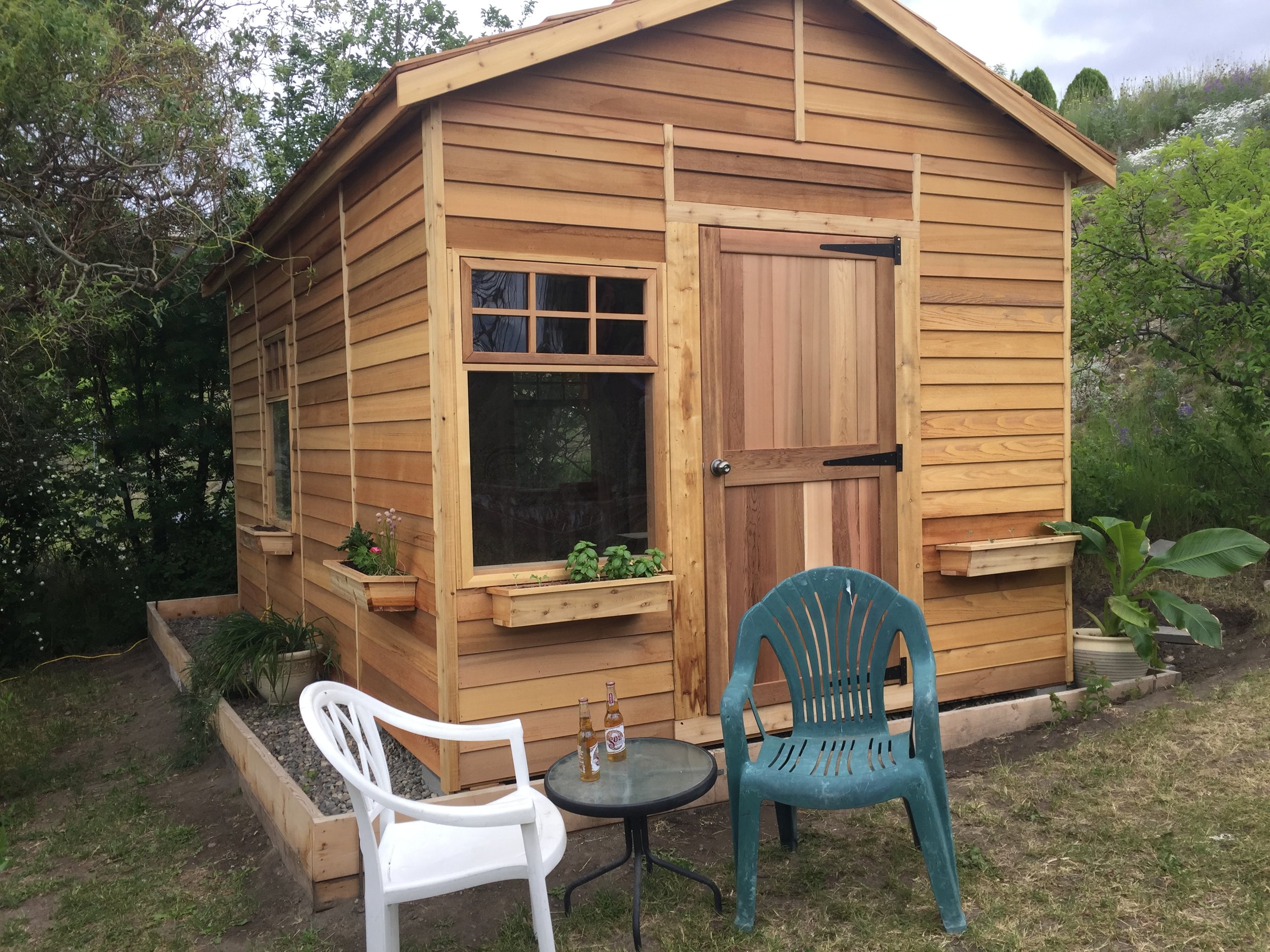 Our tiny home was purchased through the company Cedarshed that I previously worked for. We went with a 10x16 model which costs just over $4,000, but with an employee discount, I believe we paid around $3,000. It is definitely on the smaller side and being that it is only 160 square feet we chose to go with an extra 1-foot wall extension, which gave us some extra height and allowed us to add a storage loft. The reason we went so small is the concern we had with alarming our neighbors. You see we figured if we kept the cabin a reasonable size, then we would be less likely to run into problems with the local neighborhood.