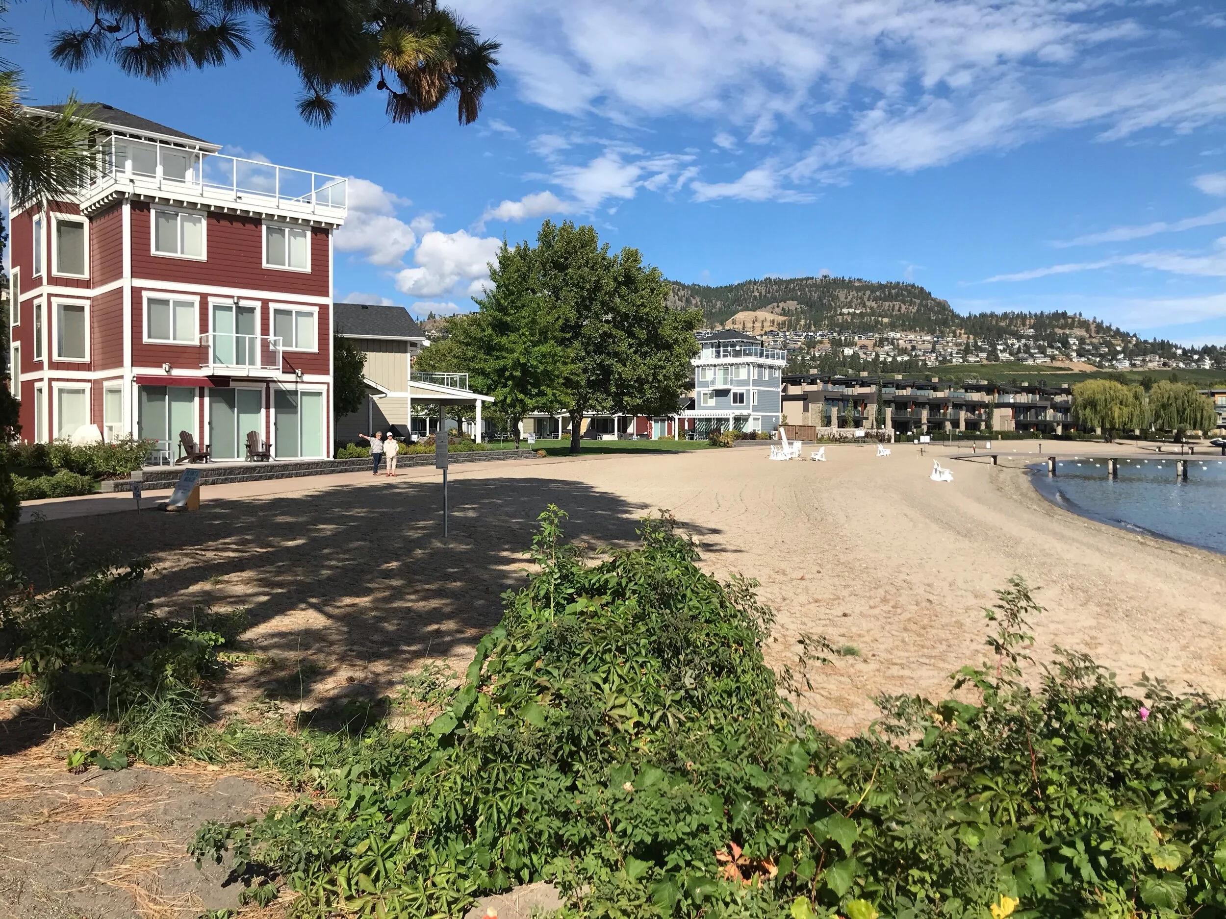 On the beach, there are picnic tables as well as loungers to sit and take in the gorgeous Okanagan Lake scenery.