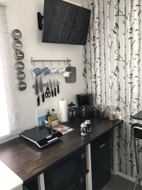 For accommodations in Revelstoke, BC we chose to go with Airbnb and stayed at the lovely Gondola Cabin Tiny House with Lockable Bike Room. It is a very affordable vacation rental that is perfect for a couple and has all the amenities you will need. The hosts are Superhost rated on Airbnb as well as friendly, responsive, and welcoming, making it a truly comfortable stay. The location is very convenient as well and is only a short drive to the local supermarket and other attractions. The tiny house also has splendid views of Mount Begbie and its glaciers.