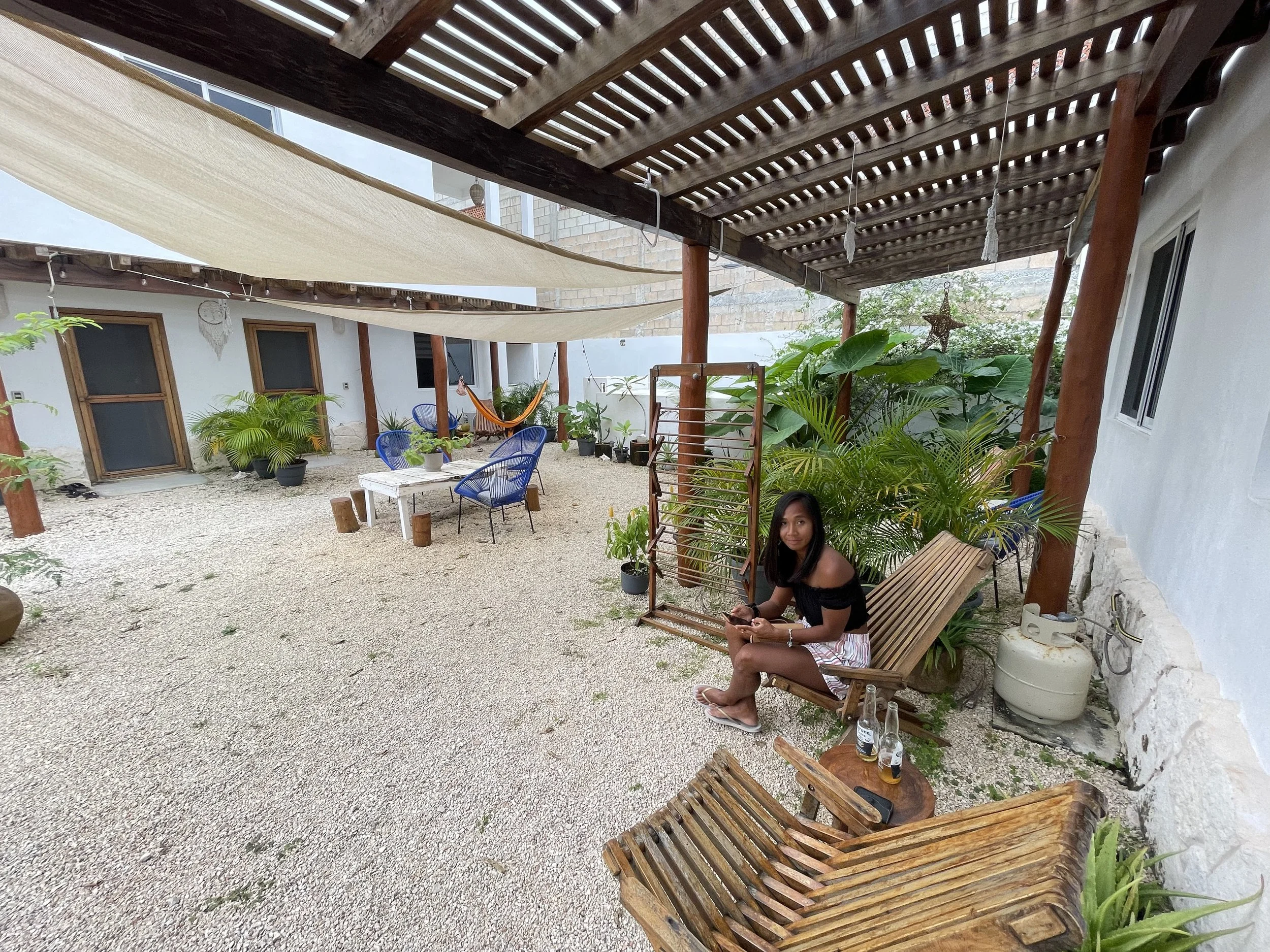 Blue Mahahual is a small complex of 5 Airbnb vacation rental apartments with a shared garden area. The rental units are located in the small fishing village of Mahahual in the state of Quintana Roo, Mexico. Mahahual is a town that lies on the shores of the Caribbean Sea and was once a sleepy Mexican village. Nowadays the town is becoming a regular stopover for large cruise ships coming from parts of the USA and can get quite busy when the ships come in.