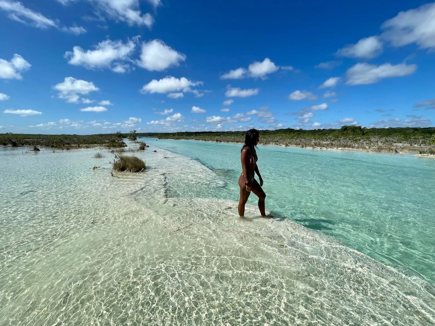 Los Rapidos is a unique area of the Bacalar Lagoon that could be described as a narrow channel between two sections of the lake. The narrowing of the water creates a rapid that pushes you through the channel at a nice meandering pace, allowing you to fully enjoy the beauty. Aside from having incredibly blue water, the rapids are lined by ancient organisms called stromatolites as well as rare freshwater mangroves making it a truly once-in-a-lifetime experience.
