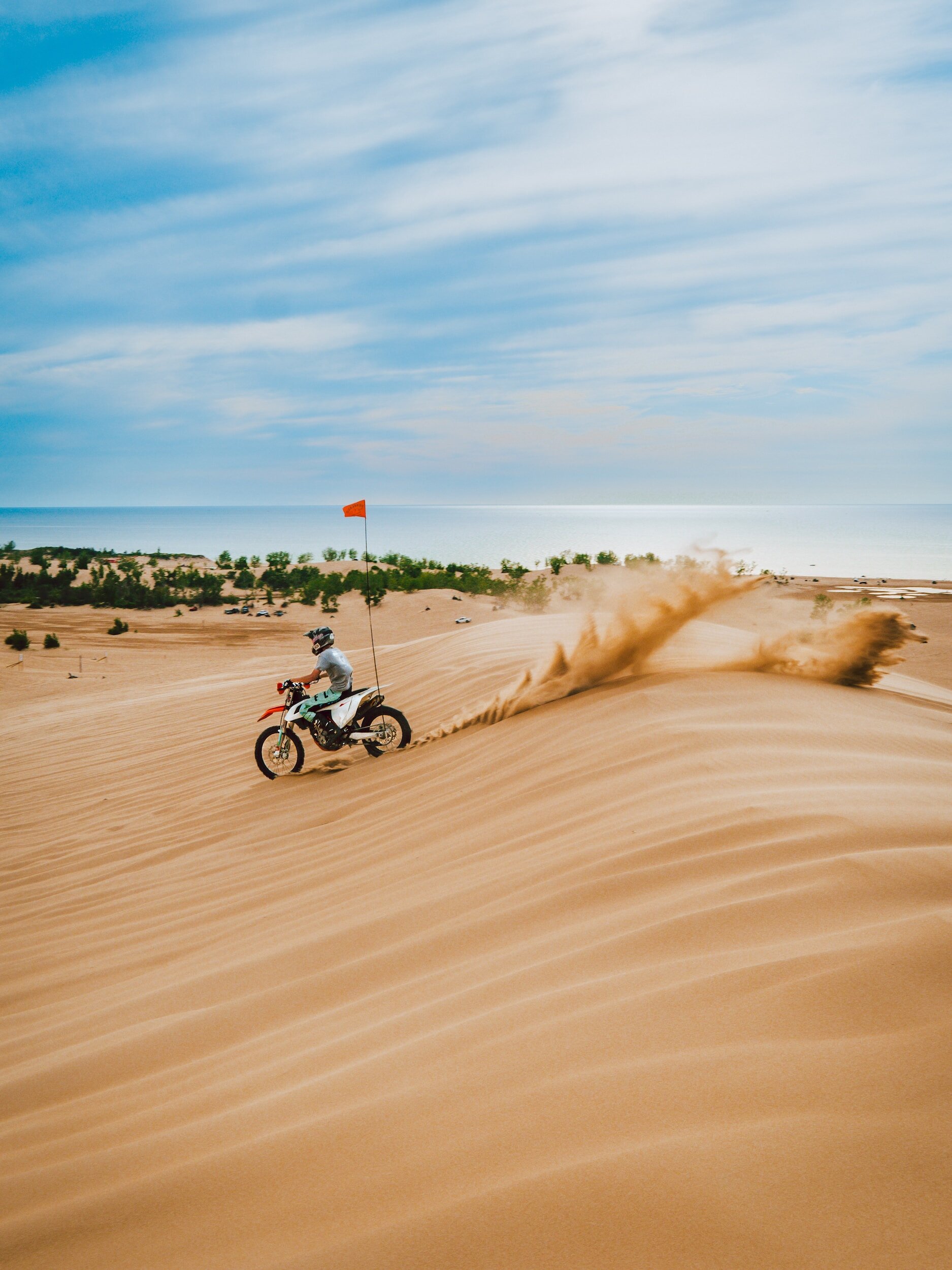 Maintain a Safe Speed: Do not yield to the temptation of riding a dirt bike at its maximum speed. In the desert, it is very important to keep a reasonable and managed speed, as there may be soft sand or abrupt terrain elevation changes that can be sporadic. Beware of rough terrain and slow down.