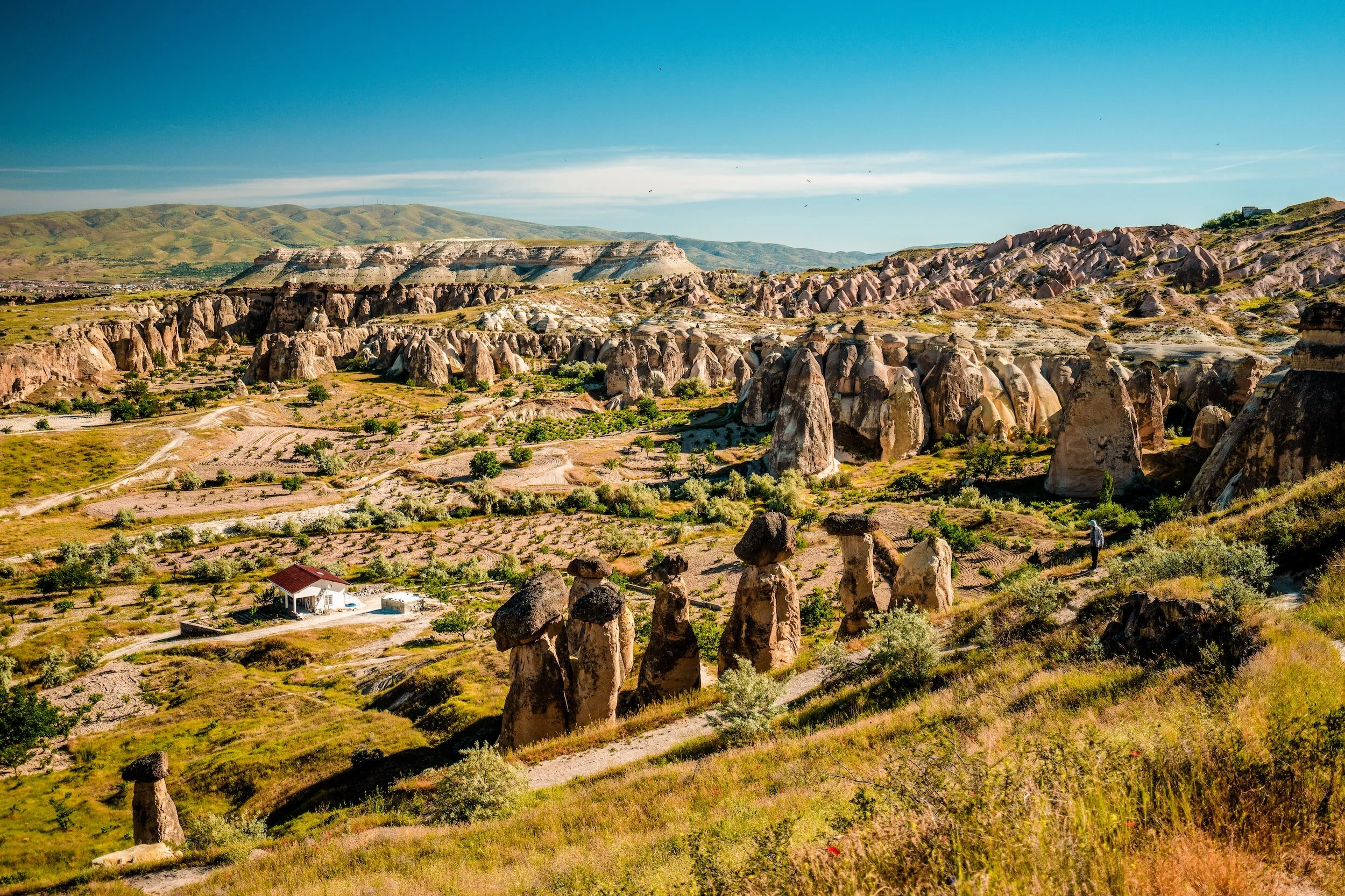 Get ready to be fascinated by Cappadocia's surreal beauty, which is known for its spectacular rock formations and cave homes. Witness the sunrise as it casts a golden glow over the fantastical landscape by ascending in a hot air balloon. Visit the old churches with their beautiful frescoes and explore the underground cities cut into the soft volcanic rock. Every turn in Cappadocia presents a fresh, alluring scene, making it a photographer's dream location.
